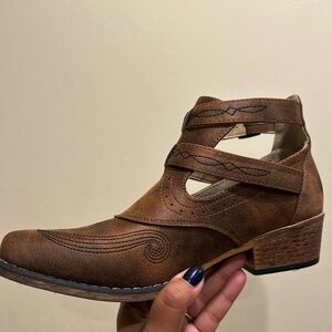 Roper Womens Willa Embroidery Snip Toe Cowboy Ankle Boots NWOT