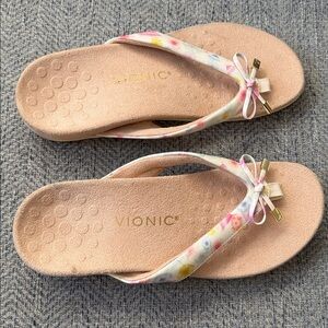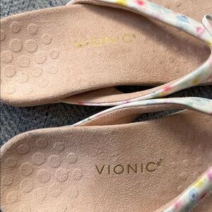 VIONIC Multicolored Flowers Thong Flip Flop Orthaheel Technology Sandals Size: 7