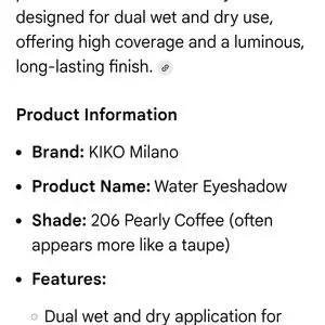 Kiko Water Eyeshadow Pearly Coffee #206 NEW