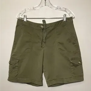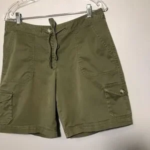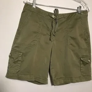 L. L. Bean Women's Shorts Size 10 Green Cargo Pockets Drawstring Cotton Spandex