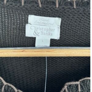 Christopher & Banks Cardinal Embroidered Sweater Knit Long Sleeve Green Women L