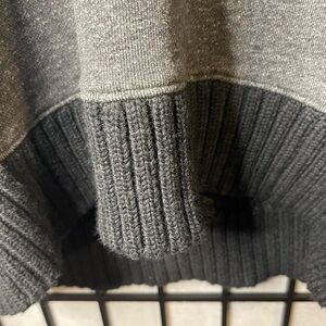 Stylish crewneck sweater with a two-tone gray design. Perfect for layering and casual wear.