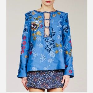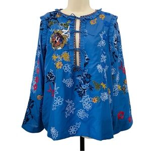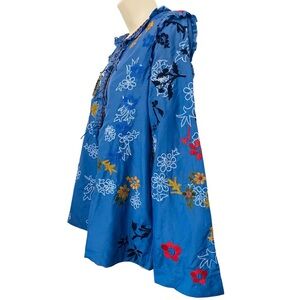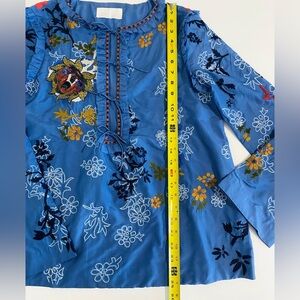 Elliette Size Medium Silk Blend Penny Embroidered Beaded Floral Blouse