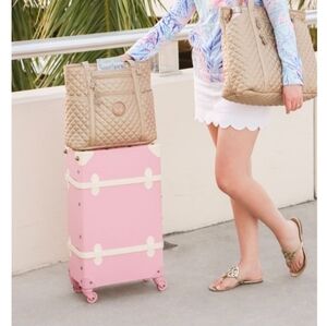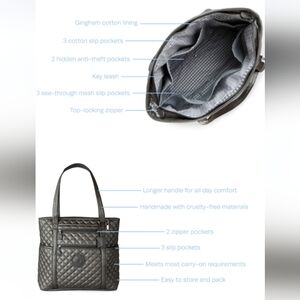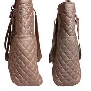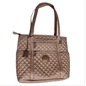 DD Bird The Gold Nylon Nash Bag. Quilted. Water, fade, and stain resistant. Dual Handles. All-purpose/multi-functional tote bag. Gingham check lined.