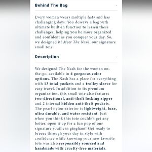 Stock images may be included to give additional information on the item or to better highlight the bag's features.