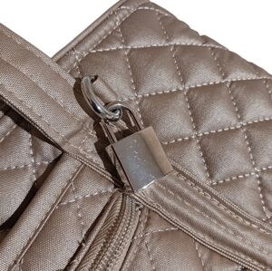 Dual-direction zipper with (optional) padlock & key plus 2-interior hidden anti-theft zippered pockets at the bottom