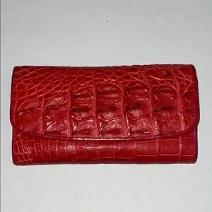Amazing Red Crocodile Leather Wallet. There is on small mark on the back (see photos). It may come out with leather cleaner. Interior is clean and in amazing condition. Definitely a statement and quality piece looking for the right home! 😍
