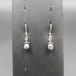 Silver Plated Small Genuine Pearl Dangle Earrings A6518