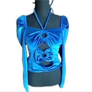 Torn by Ronny Kobo Blue Velvet Petra lomg sleeve cut out Top NWOT size Large