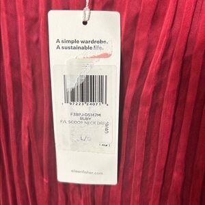 NWT Eileen Fisher red crimson crushed cupro scoop neckline dress, Size L. New without tag tag!