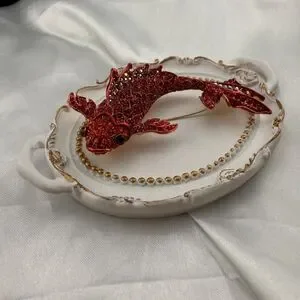 Betsey Johnson Red Fish Brooch with Rhinestones