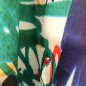 White and green doodle sleeveless jumpsuit. Two pockets in the front. Ne…