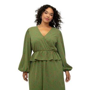 ELOQUII Elements Green Print Peplum Midi Dress Size 18