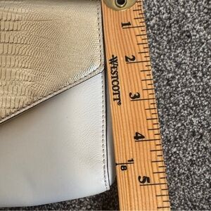 Kate Spade New York Cream Ivory Leather Clutch Gold Lizard Embossed Flap Bag