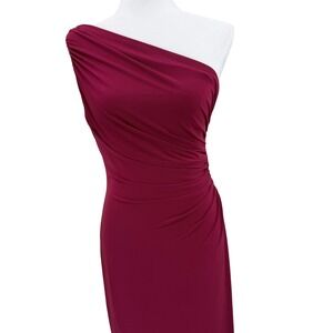 Command attention in this stunning Lauren Ralph Lauren Evening maxi dress. The luxurious berry hue and elegant one-shoulder design create a sophisticated silhouette. Beautiful ruching cinches the waist, creating a flattering and feminine shape that flows into a dramatic side slit. This dress is perfect for galas, formal events, or a romantic evening out. This dress is very figure flattering, simple and elegant. It is stretchy and comfortable.