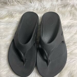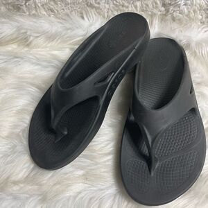 OOFOS Unisex Black Rubber slip on thong sandals Men SZ12 Women SZ14