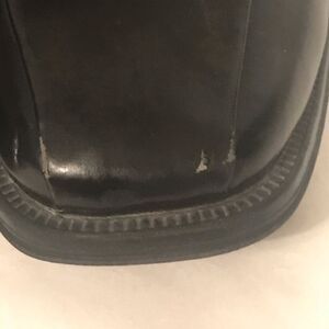 These are a beautiful pair of black leather Reaction lace-up Oxford style shoes for men. Very gently worn with la little visible wear on the toes, shown in the pictures.