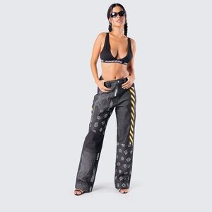 Finesse Jacko Jeans Size XL Black Smiley Patchwork