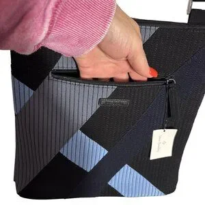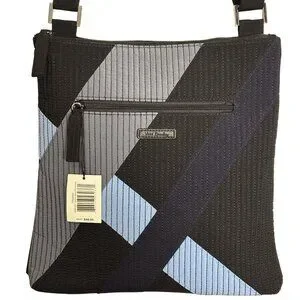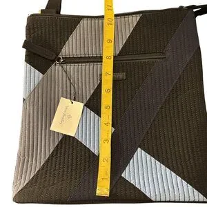 This Vera Bradley crossbody bag combines a sleek geometric pattern with functionality. Its quilted fabric adds texture, while the adjustable strap ensures comfort. Multiple compartments, including a zippered pocket, 3 inside pockets, offer versatile storage. Perfect for carrying necessities while adding a stylish statement to your outfit. This is a fun travel bag.