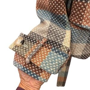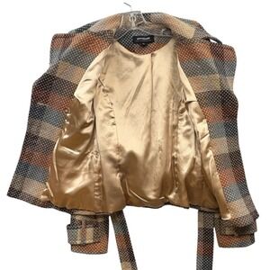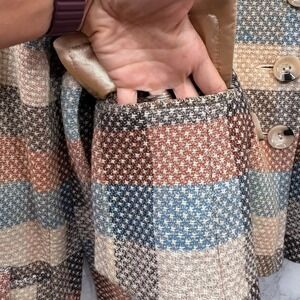 Y2K Coffeeshop Women's Plaid Wool Blend Jacket Belted Retro Button Up Size M