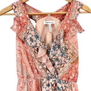BCBGeneration Womens A Line Dress Pink Mini Patchwork Ruffle Sleeveless XS