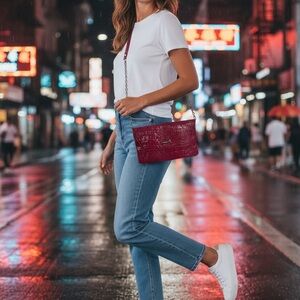 Elevate your style with this chic burgundy croc-embossed bag. Featuring a sleek chain strap, it's perfect for any occasion.