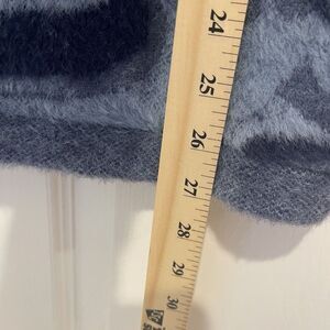 This sweater feels like angora! So soft. Does not have size tag see dimensions. Worn once- size cut out but between M and L see measurements
