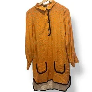 Fendi Tunic Dress Size 40 US 6 Orange Gold Abstract Silk Mod Style Made in Italy