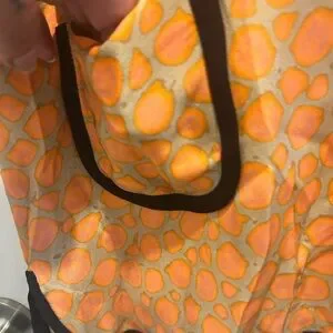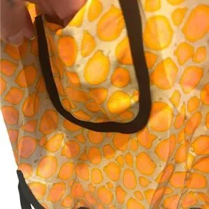 • Color: Orange and Gold with Abstract Polka Dot Pattern