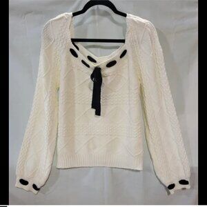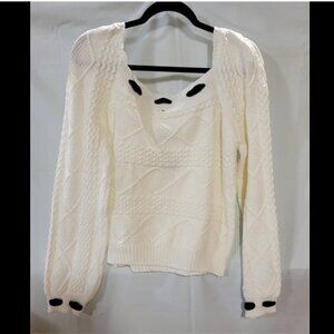 Ivory Square Neck Sweater w/ Black Woven Accents sz 3XL