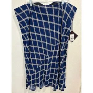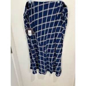 Discover effortless style with the Ava & Viv Midi Skirt in a stunning blue hue. This plus-size skirt is made of 100% Rayon, designed for all seasons, offering a flattering fit with its breathable fabric. The geometric pattern adds a touch of modern flair, making it perfect for workwear. Available in size 2XL. New with tags. 36A