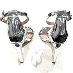 Aldo Women’s Silver Chrome Flower High Heel Sandals Size 8.5 NWOT