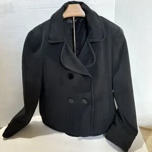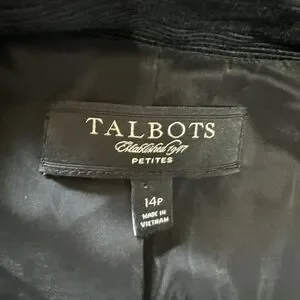 Talbots Women’s Sz 14P Black Blazer Business Causal Cotton/Silk Cropped