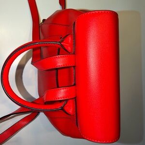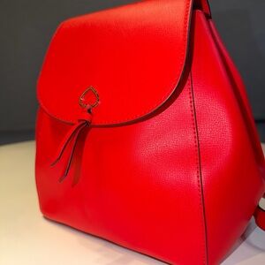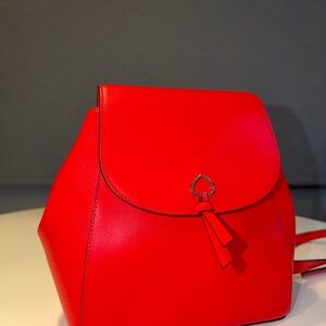 This vibrant Kate Spade red leather backpack perfect for any occasion. Features a sleek design with a heart-shaped accent for added charm.