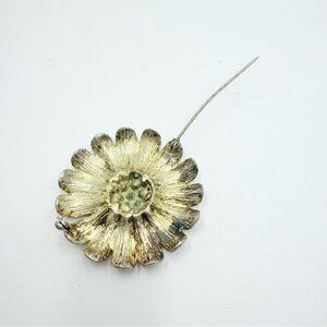 This vintage brooch features a charming floral design with marbled salmon pink enamel petals and sparkling rhinestone accents. Crafted in a silver-tone setting, it adds a touch of retro elegance to any outfit. Ideal for collectors or as a unique accessory to enhance your wardrobe.