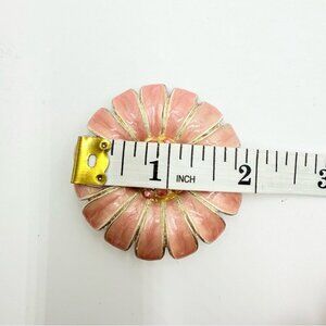 Vintage Flower Rhinestone MarbledSalmon Pink Enamel Brooch
