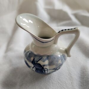 Delft Blue Miniature Pitcher Hand Painted Holland Windmill Ceramic Vintage