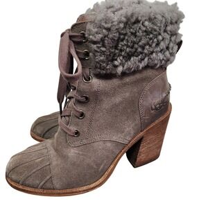 UGG taupe sueded leather heeled lace up boots 7.5 Cabincore