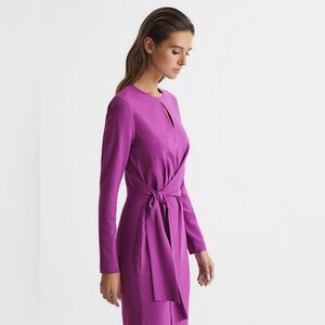 REISS VALENTINA TIE WAIST BODYCON MIDI DRESS IN MAGENTA