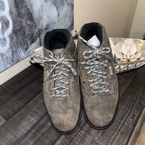 Laces: Contrasting light-colored laces, possibly with black flecks