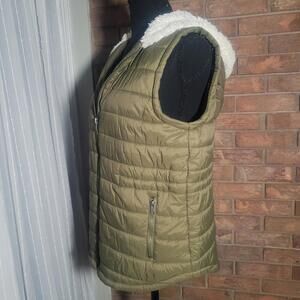 Jack by BB Dakota Faux Fur Lined Women's Hooded Puffer Vest Olive Green - Size S