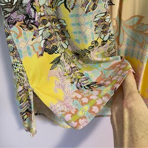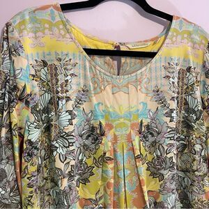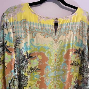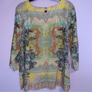 Soft Surroundings Boho Blouse Jersey Knit Top 3/4 Sleeve Yellow Psychedelic XL