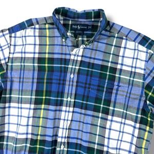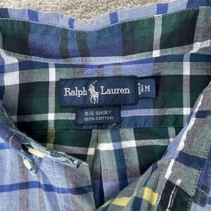 Ralph Lauren Men's Button Up Shirt Size Medium Big Shirt Short Sleeve Blue Plaid
