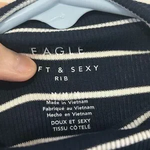 Brand new with tag American Eagle Soft & Sexy Long Sleeve Mock Neck Ribbed T-Shirt. Size M, and color is navy. MSRP$29.95.
