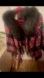 Stylish plaid cape with faux fur collar. Features red and black pattern. Perfect for holiday layering.