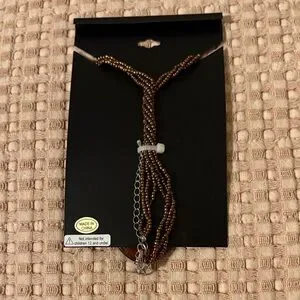 Discover the Erica necklace with a captivating brown and silver teardrop pendant made of glass. A perfect accessory to elevate your style. 16” with extender. NWT