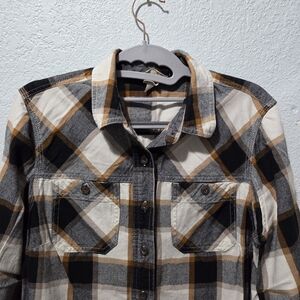 Duluth Trading Co Black and Tan Checkered Shirt