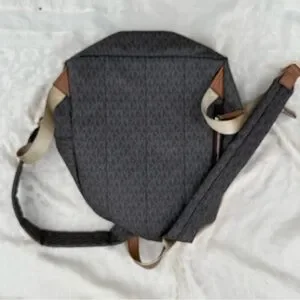 Stylish Michael Kors backpack with signature MK pattern. Features a front zip pocket and adjustable straps.