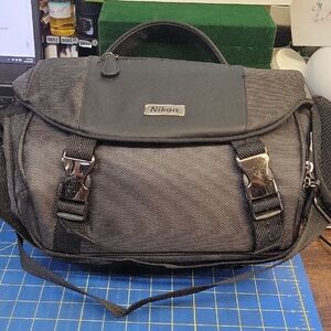 Sleek Nikon camera bag. Ideal for carrying gear. Durable and stylish design.