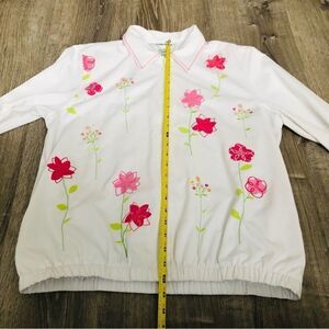 Alfred Dunner White Floral Beaded Long Sleeve Lightweight Zip Up Jacket Sz Small